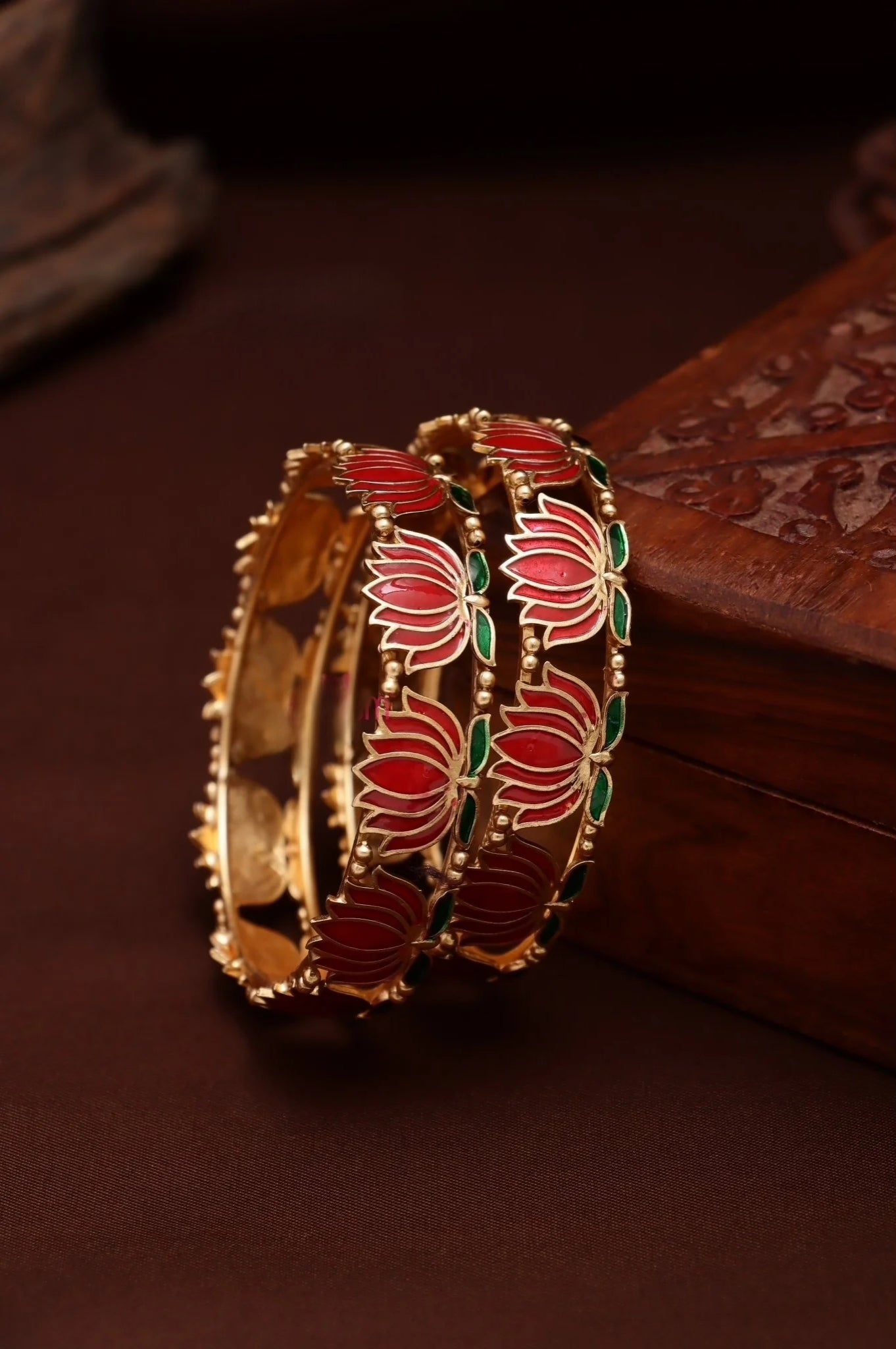 Enamel Lotus Bangle (Pair)